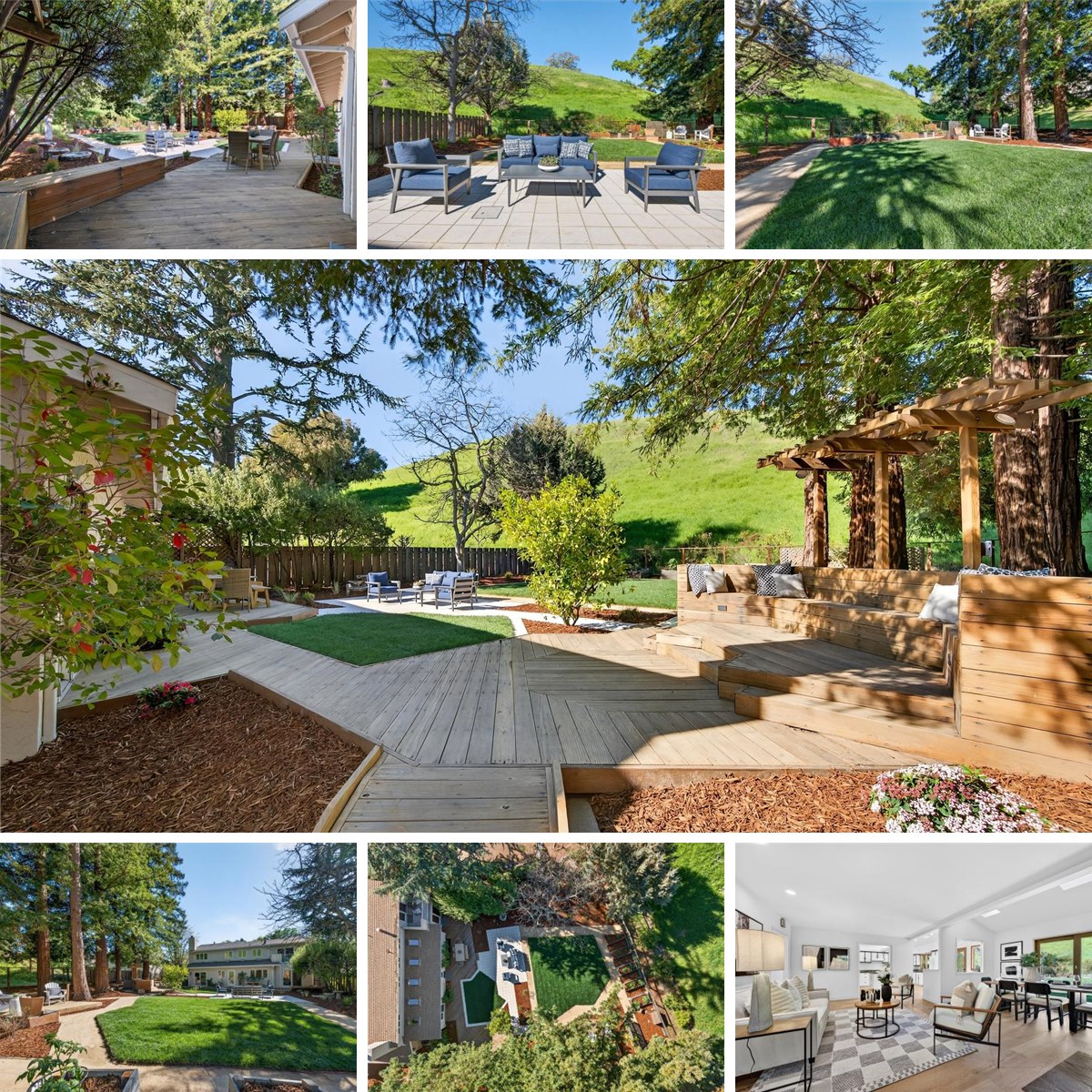 Outside, your private backyard paradise awaits — flat, lush grass for play, raised garden boxes, expansive entertaining deck off the kitchen/family room, and breathtaking green hill views. Serene and quiet, yet right around the corner from the community pool!